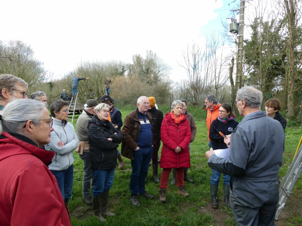 Cette année de nouveaux des adhérents novices veulent acquérir les techniques de taille. Christian a fourni des explications plus détaillées, reconnaissance des organes visibles du fruitier, les différentes tailles (formation, fructification, restauration et taille des arbres palissés). Après les explications, les adhérents ont pu pratiquer la taille d’abord dans la pépinière une démonstration de taille de formation sur scion et ensuite taille de fructification sur quelques arbres du verger afin d’acquérir les bons gestes. Une démonstration de taille des arbres palissés a été faite.