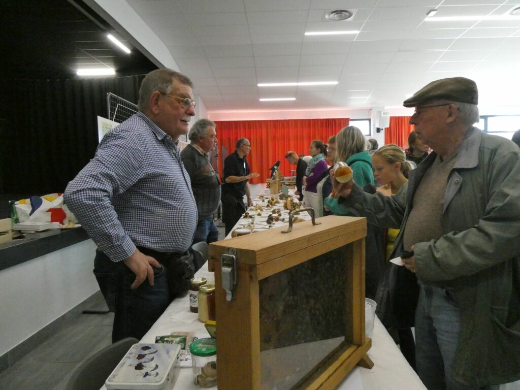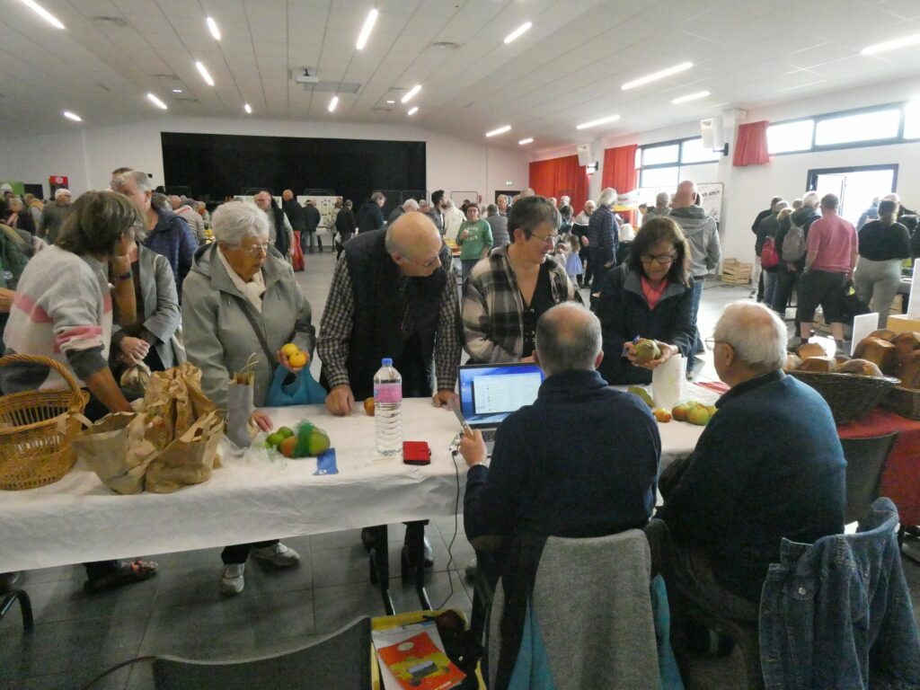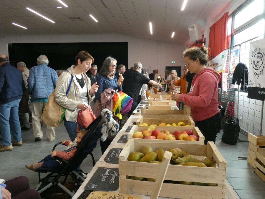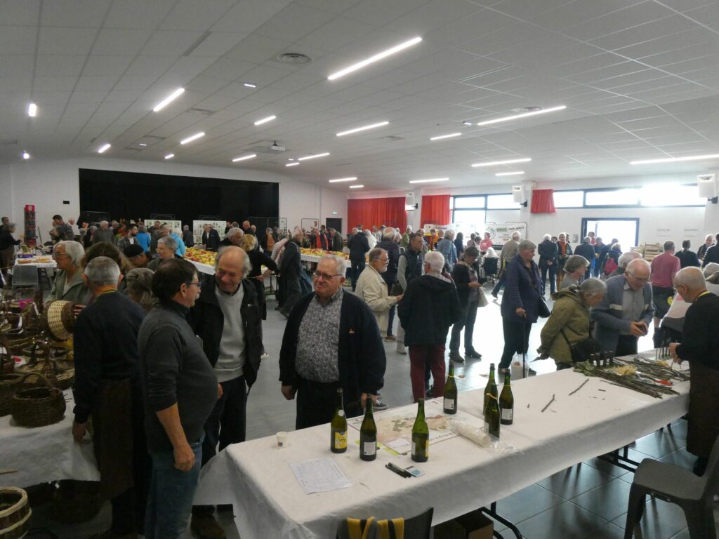 Dès 10h le public a emprunté les allées de la salle. Certains recherchant des conseils, d’autres voulant identifier leurs pommes et d’autres tout simplement admirant les expositions ou s’approvisionnant dans les divers stands. L’identification de pommes a bien fonctionné dès le matin, beaucoup de visiteurs ont apporté leurs échantillons, avec 2 personnes à l’identification il fallait patienter un peu pour obtenir le résultat.