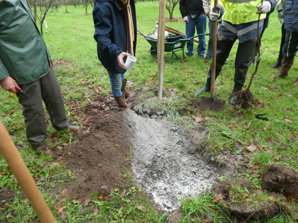 Préparation du trou de plantation, ajout de chaux et de Bochevo à bien mélanger au fond du trou