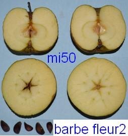 Pépins moyennement nombreux, rachitiques (plats), pointus, allongés, marron-clair.